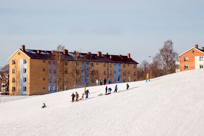 To av blokkene i Åsensvingen med Muselunden i forgrunnen.