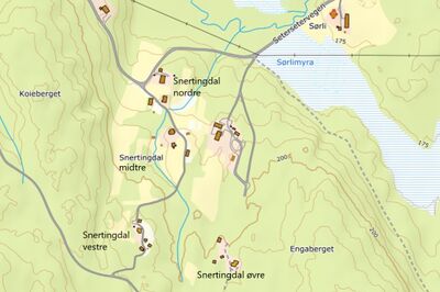 - Nordre Snertingdal på dagens kart fra Kartverket: Norgeskart