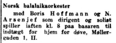 Norsk Balalaikaorkester ble stiftet i 1920 i Kristiania. Initiativet kom fra Boris Borisoff, som ble orkesterets første dirigent. Alle musikerne var i begynnelsen russiske immigranter [1], og de opptrådde gjerne i fargerike folkedrakter.