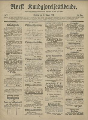 - Norsk Kunngjørelsestidende på Nasjonalbibliotekets nettbibliotek (1883–1938).