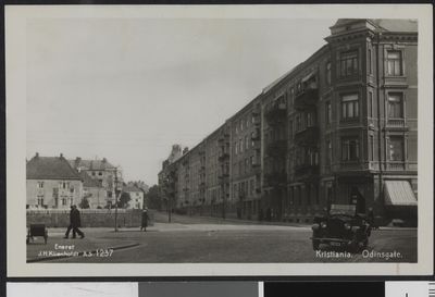 Gata fikk navn i 1896 etter den norrøne guden Odin. Bebyggelsen består av leiegårder fra 1890-tallet og senere. Nr. 21 til 27 er en rekke med bygårder tegna av arkitekt Syver Nielsen i en variant av stilretningen nasjonaljugend kjent som «Frognerjugend», og er det fremste eksempelet på en enhetlig rekke bygninger i denne stilen.