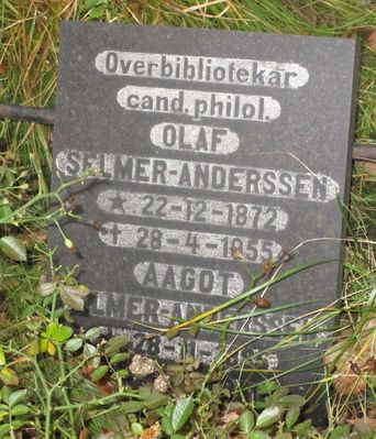 Olaf Selmer-Anderssen er gravlagt i familiegrav på Gamle Aker kirkegård i Oslo. Titlene Overbibliotekar og cand. philol. er benyttet på gravminnet.