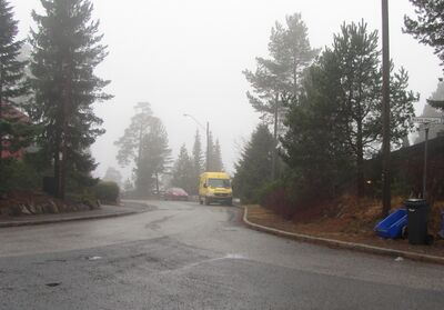 Motiv fra Olav Aukrusts vei i Oslo en tåkete januardag.
