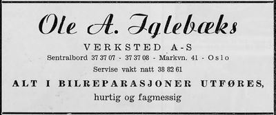 Ole A. Iglebæk var importør og forhandler av biler fra General Motors Company og REO Motor Car Company. Selskapet hadde salgsavdelinger i Oslo by, Skien by, Kristiansand by, Stavanger by, Bergen by og Trondheim by.[1] I tillegg hadde de underforhandlere, blant andre H. Martinsen Bilverksted i Alstahaug kommune, Nordland,[2] og REO-forhandler Peder S. Fjetland i Stavanger by.[3] Konsernet ble grunnlagt av Ole A. Iglebæk (f. 1865 i Øvrebø).[4]