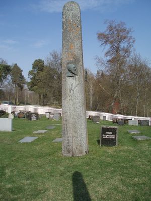 Gravminne på Egge kirkegård, hvor han er gravlagt sammen med sin ektefelle Fredrikke Marie Qvam.