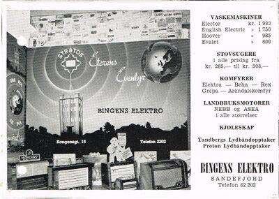 - "O. Bingen" på Hasle i Sandar. Navnet endret til "Elektro-Magasinet" i 1932.[3]