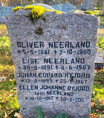 Oliver Neerland er gravlagt i familiegrav på Vestre gravlund i Oslo.
