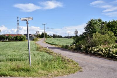 Olsrødveien på Olsrød i Sandefjord kommune går sørøstover fra Tassebekkveien til Torp planteskole, Olsrød (gnr. 463/2).