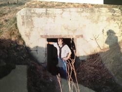Disse bildene ble tatt så sent som i 1985, litt høyere opp i bakken enn der Biltilsynet ligger nå. De viser en av luftvernkanonstillingene, det var i alt tre av dem. De var forbundet med en løpegrav, med en felles kommandosentral, et av bildene viser inngangen til denne. I dag finnes ingen spor etter dem. Kilde til tekst og foto: Bjørn Walter Lund.