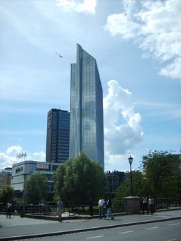 Bygningen ble oppført 1987–1989 for Realia A/S ved White Arkitekter AB. Den er reist i armert betong med fasader av speilglass, og er et tydelig landemerke på langt hold. En av heisene er plassert utenpå bygningen, og gir utsikt over byen og fjorden på vei opp til restauranten i øverste etasje. Ved siden av høyblokka står en lavblokk på tre etasjer med inngangsparti, resepsjon, konferansesaler og serveringssteder.