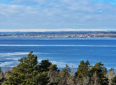 Oslofjorden; bildet er tatt fra Jeløya i Moss kommune i vestlig retning mot Moss (bak i bildet).