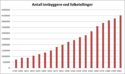 I 1815 bodde det i Norge 885 000, men bare 87 000 i bykommuner. Den største byen var Bergen med 18 000 innbyggere i 1801.