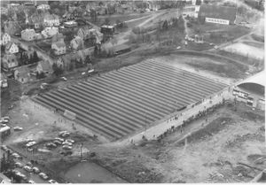 Da okkupantene begynte å ta seg til rette på idrettsplassen, ble gutter i alle aldre nokså naturlig revet med i det som skjedde der. Lagerbrakker ble reist på trekanten der kirka seinere kom opp. To lange og ei litt mindre brakke ble reist i området fra Tennisbanen og opp til Barnehjemsletta. Den minste ble benyttet som bad og badstue. Rundt brakkene ble ungene holdt unna, men på idrettsplassen fikk de boltre seg, så lenge ikke vernemakten selv hadde den i bruk, enten til sportslige aktiviteter eller de mer uartige straffeksisene. Gutter i alle aldre lå i skjul i graset rundt banen. I granskogen som skoleklassen i sin tid planta, der Barnely barnehage mange år seinere ble bygd, ble det satt opp en maskingeværstilling. Det var forbudt område, og de som nærmet seg ble jaget, men derfor var det jo veldig spennende.