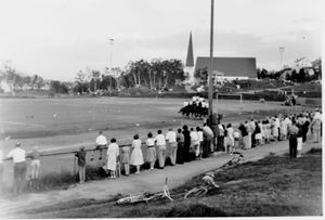 Parken både var og er så mye mer enn idrettsbanen. «Katolikkerkirka» ble bygd 1893 og menigheten etablert i 1898. Men ikke før 1923 fikk menigheten sin egen prest; 30. juli ankom pastor Broël, og få dager seinere ankom søstrene Milkandis, Silvana og Heribalda. 24. august samme året ble Bjarne Erlingsønsgate 12 ervervet for å skulle huse søstrene og et hospital. 27. september 1927 ble sykehuset offisielt åpnet. Da hadde Gunnar Johnson tiltrådt som overlege på Harstad sykehus, og han ble også benyttet som lege ved det som kom til å hete «St. Elisabeth». Et par år seinere ble bygningen påbygd og kapasiteten utvidet. Sykehuset og dets søstre gjorde så en formidabel innsats i kampen mot tuberkulosen. Men også kommunismen ble søkt bekjempet. Ved stortingsvalget 1927 gikk partiene på «sykebesøk» til velgere som ville avgi stemme. Aage Rønning og Albert Stangnes ble loset av priorinnen til en av sykehusets pasienter som hadde bestilt besøk av kommunistene. Men akk, da priorinnen forsto at herrene gikk for kommunistene og hun fikk se redaktør Simensens navn på seddelen ble hun hysterisk. Det kom et foredrag om bolsjevikene i Russland og en erklæring om at Simensen ikke hadde gjort noe godt for hospitalet som tilsa at han skulle få noen stemmer derfra!