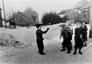 Den tyske vernemakta holdt ellers god kustus på soldatene sine. Var det noen som på noen måte forgikk seg, ble de satt på straff. Straffe-eksisen var spennende å se på, og da det ikke var lov å se på, ble det jo ekstra spennende. Ungene gjømte seg i graset nedenfor idrettsplassen, men fikk med seg det meste av det som skjedde. Soldatene ble stilt opp og satt i marsj. Når så retningen var mot huset til politi Flakstad, gikk de helt til de møtte gjerdet. Etter som de ikke fikk ordren «halt» (holdt), ble de stående å marsjere der, den forreste så å si med nesa i gjerdet før befalet fant det for godt å vende dem om. For ungene var dette en spennende lek, noe sikkert ikke soldatene som var utsatt for nedrighetene, var like glade for.
