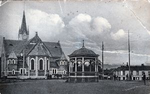 «Den av Attenæet skjenkede musikpaviljon er nu reist reist på torvet og saavidt ferdig at den er tat ibruk nu av brigademusiken. Løitnant Glomsaas, som vi talte med igaar, uttalte sin fulde tilfredshet med den nye paviljon. Lydforholdene virket aldeles utmærket».