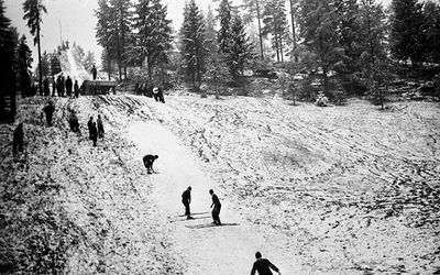 Det første kjente hopprennet ble arrangert her i 1909. I mellomkrigstida var bakken samlingspunkt for byens blomstrede hoppmiljø med Ruudbrødrene i spissen. Første renn skulle alltid arrangeres så tidlig som på «bededagen» i oktober. Om nødvendig blei snø skrapet sammen fra hele byen, kjørt opp og fordelt utover såpass at det kunne hoppes.