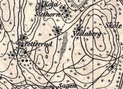 | Petterud på turkart fra 2002 utgitt av Skakland-Vestsiden Utmarkslag. Her er også Seterbakken, Linnerud og (søndre) Koien med. | |