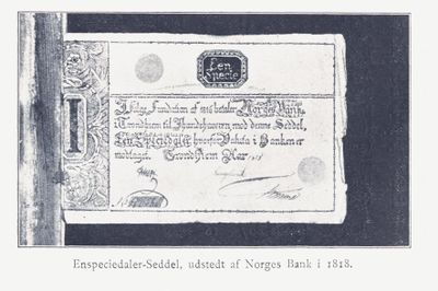 Et lands pengevesen bygger naturligvis på en historisk utvikling, og det selvstendige Norge hadde arvet en lang og ulykksalig fortid fra en eneveldig kongemakt. I 1736 ble det opprettet en privateid institusjon, Kurantbanken i København, med kongelig tillatelse til å utstede pengesedler. Det var første gang pengesedler kom i sirkulasjon. Banken garanterte at den som disponerte en seddel på for eksempel en kurantdaler kunne bytte seddelen mot 20,63 gram (g) sølv. Pengeenheten bygget derfor på sølv, og så lenge banken hadde sølv nok til innveksling, ville papirpengenes verdi normalt svare til sølvverdien.