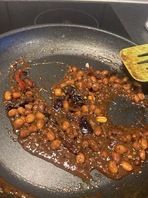 - Tilsett urid dhal, channa dhal, bukkehornkløverfrø og peanøtter.