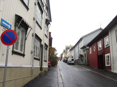 - Nr. 2 og 4: Trebygninger fra 1700-tallet, blant få bygninger som overlevde bybrannen i 1810.