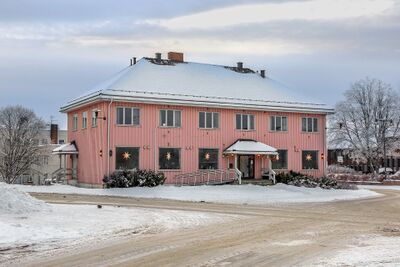 Nes rådhus, som sto ferdig i 1967, har gitt navn til denne sentralt beliggende gata i Årnes sentrum.