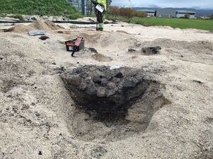 I løpet av etterjulsvinteren ble universitetsmuseet i Tromsø satt i beredskap for å undersøke en mulig gårdsbosetting fra jernalderen man hadde registrert i 2016. Anlegget ligger i nær tilknytning til det foran omtalte vegkrysset. Opprinnelig var det søkt om og avsatt 5 uker til å gjennomføre prosjektet. 22. mai 2023 ble et mannskap på sju med arkeologisk kompetanse satt på jobben med å søke å fravriste grunnens nær 2000 år gamle hemmeligheter langs E-10 og adkomsten til Rødskjær næringspark. De registreringer man hadde gjort i 2016 og de funn man først gjorde i mai-juni 2023 kunne tyde på at man sto overfor en gård fra eldre jernalder. I løpet av juni vippet tolkningene mer mot et ringtun, da en jernaldergård ikke ville hatt husene sine på rekke.