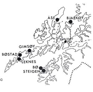 Det er utarbeidet en kartskisse over de tunanlegg arkeologene til nå (per november 2023) har avdekket fra eldre og yngre jernalder i Nord-Norge: Nergård på Bjarkøya, Åse på Andøya, Rødskjær på Hinnøya i Sandtorg i Harstad, Gimsøya i Vågan, Bøstad på Vestvågøya, Leknes i Vestvågøy, Bø på Engeløya i Steigen kommune og Vollmoen vest for Steigen kirke (også i Steigen kommune). Den viser hvordan Rødskjær-anlegget plasserer seg i forhold til de øvrige.
