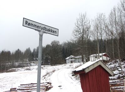 Vegen Rømmerudbakken i Feiring i Eidsvoll kommune går sørvestover, deretter nordvestover, fra Feiringvegen til gården Bakken.