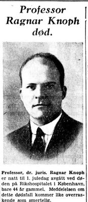 Professor Knoph var ennu ikke fylt 28 år da han utnevntes til professor i rettsvidenskap med særlig forpliktelse til å foredra privatrett, derunder sjørett. Og allerede før denne tid hadde han henledet opmerksomheten på sig som en av de mest lovende yngre jurister vårt land på den tid hadde. ... Professor Knoph, som var en av våre mest ansette jurister, hadde internasjonal berømmelse, og har utgitt en rekke større avhandlinger og skrifter av juridisk art.