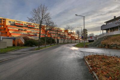 Ravnåsveien like ved avkjøringen til Holmlia kirke.