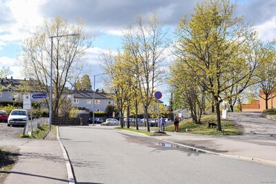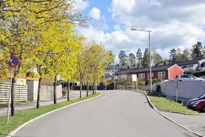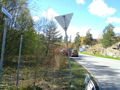 Ravnåsveien like ved avkjøringen til Holmlia kirke.
