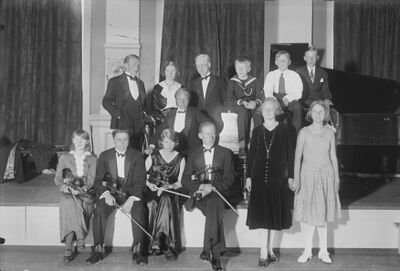 Komponist og musikklærer Reidar Brøgger (sitter midt i bildet) med elever.
