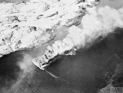 Fartøyet ble liggende på Rosøya med baugen i været og med hekken opptil 30 meter under vann. Dette medførte at rundt 250 ombord reddet livet, herunder en av de norske straffangene Asbjørn Schultz (1921–2004). Schultz kom seg i land sammen med en sovjetisk fange og en tysk soldat, hvor alle tre måtte hjelpe hverandre.