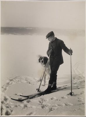 Roald Amundsen og bikkja hans ute på isen i Bunnefjorden ved Uranienborg