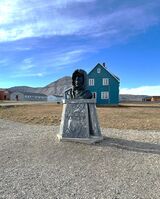Tilknytningen til Ny-Ålesund gjorde at en byste av Amundsen ble avduket der av Helge Ingstad 11. mai 1976, 50 år etter at luftskipet Norge tok av. Selve bronsebysten er en av like fem like som står rundt om i verden, på steder med tilknytning til Amundsens liv. Den skal være den eneste Amundsen satt levende modell for, i Seattle i 1921, og ble opprinnelig laget av kunstneren Victor Lewis. De fem statuene er alle avstøpninger av Lewis originale modell fra 1921. I tillegg til den i Ny-Ålesund finner vi kopier i Hobart, Tasmania, ved Polarmuseet i Tromsø, i Nome i Alaska og i Gjøahavn på øya Qikiqtaq i Nunavut nord i Canada, hvor Amundsen overvintret med Gjøa.