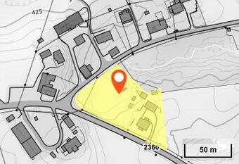 Det meste av den 4,4 mål store tomta er definert som bebygd område, bortsett fra en stripe på 300 m2 skog i nord.[13]