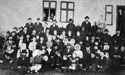 Bryllaupet til Andrea og Anders Rognsvåg (4) 7. juli 1901, med familiane deira samla. Ho var kronebrur.