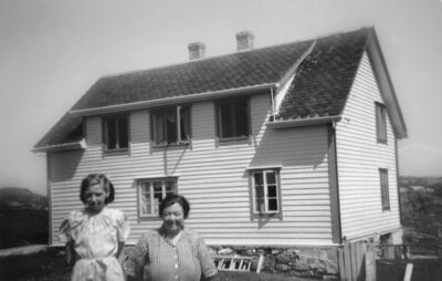 Inga og Aslaug Rognsvåg (6) framfor huset (bnr 1).