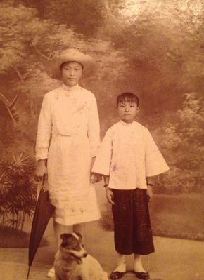 Kinesisk dame med datter. Bildet, som er tatt i Kina på 1930-tallet, er funnet i et fotoalbum som Rolf etterlot seg på hytta i Norge.