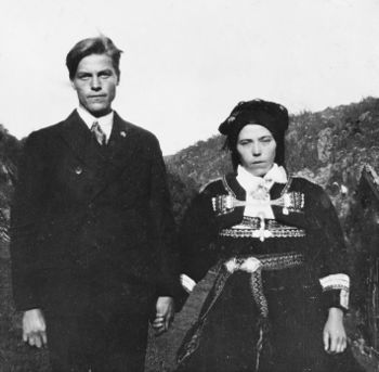 Åsmund Pålsson Ryningen (1908-1974) og kona Birgit Olavsdtr, f . Holen (1905-1992), brudlaupsbilete 1931. Bilete frå Gerd Fosse Hovden.