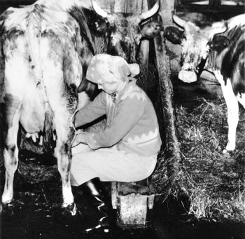 Ingebjørg Ryningen mjølkar, bilete frå ca 1960, frå Alfred Ryningen.