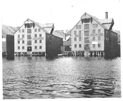 Aagaard startet i 1916 hermetikkfabrikken ”A/S Tromsø Packing Co” i 2. etg. i denne brygga. Det ble oppført kjelehus og 12 ovner for silderøyking. Fabrikken la ned vesentlig sild, hyse og rogn.