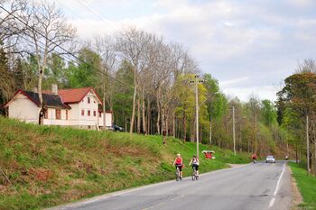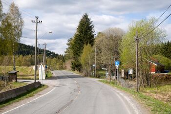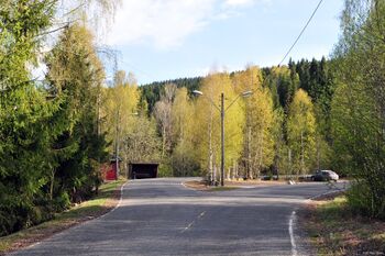 Fra Makrellbekken og USAs ambassade og til Huseby leir dannes veien den nordlige avgrensningen av Husebyskogen.
