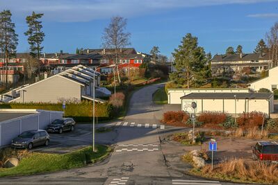 Sagstuveien sett fra en høyde sør for Gamle Vevelstadvei.