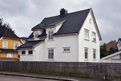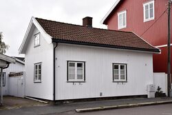 | 3 | Gnr. 171/7 Huset som skorsteinsmurer Dahlstrøm bygde til seg selv. Han var en av «skånesvenskene» som kom til Sandefjord etter bybrannen i 1900. Huset ble revet i 2020 for å gi plass til boligblokka som ble oppført i 2021 på eiendommen som fikk endret adressen til Flors gate 1C. | |