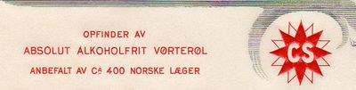 Schous bryggeri reklamerte i en årrekke for at de sto bak vørterølet, her utsnitt fra brevhode fra 1940. Logoen "CS" henspiller på initialene til grunnleggeren. Etter andre verdenskrig ble "SB" benyttet, altså forkortelsen for bryggerinavnet.