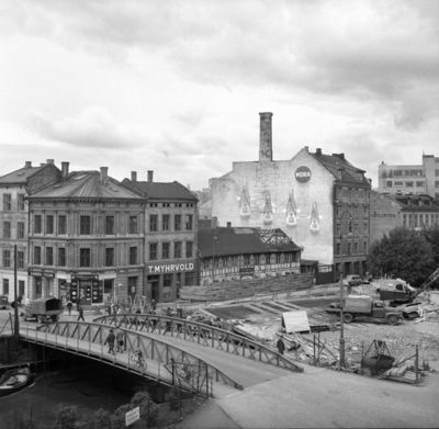 Schweigaards bru fotografert i juni 1956, sett mot Vaterland.