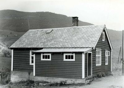 Seljedalen, Vik, Sogn og Fjordane, bygd 1870. Mørkt skulehus med kvite kantar og påbygg. Registrering utførd 1958-59 av Johan Schiong for Noregs Lærarlag.