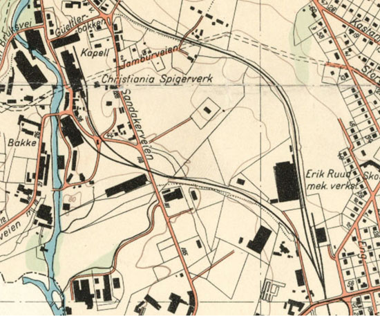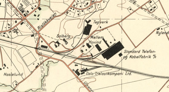 - Kart hentet fra Oslo kommune «Kart over Aker» 1938, Oslo Byarkiv.